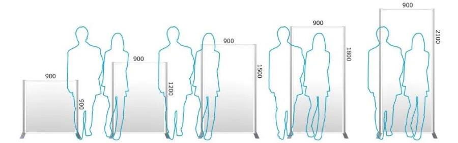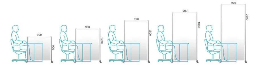 Eパネルの特長は、高さ・幅のサイズの豊富さです。高さは、H900mm~2100mmまで幅広くラインナップ。「周りの視線を遮ってデスクワークに集中したい」「背伸びをしても、パーテーションの向こうを覗けないようにしたい」など、ご要望に合わせてパネルを組み合わせることができます。